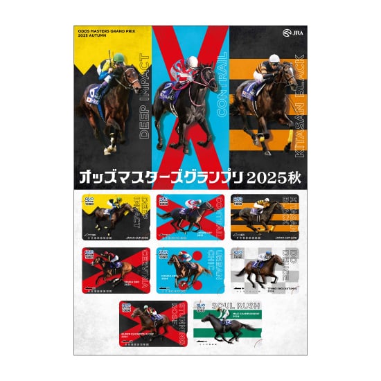 ジャパンカップ(2006年度、2016年度、2021年度)、秋華賞(2024年度)、菊花賞(2024年度)、天皇賞(秋)(2024年度)、エリザベス女王杯(2024年度)、マイルチャンピオンシップ(2024年度)、勝ち馬デザインのQUOカードセットです。